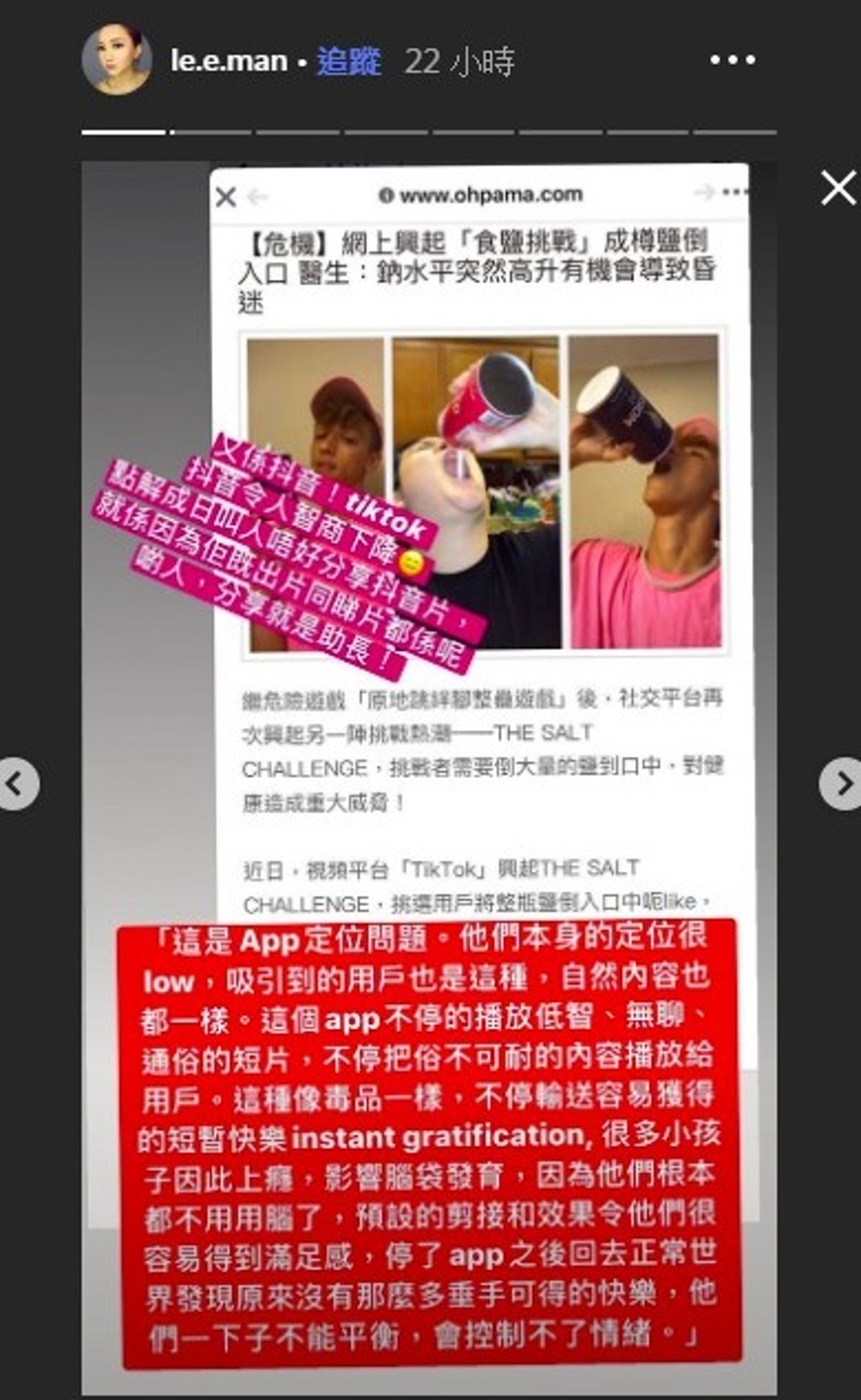 李綺雯斥抖音教壞人兼智商低下 吸引到的用戶也是這種 香港01 即時娛樂